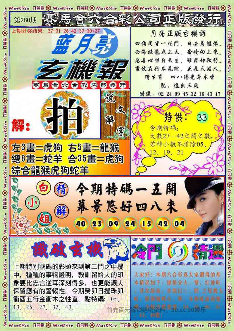 280期:绝杀三肖【鸡羊龙】开:鼠42准